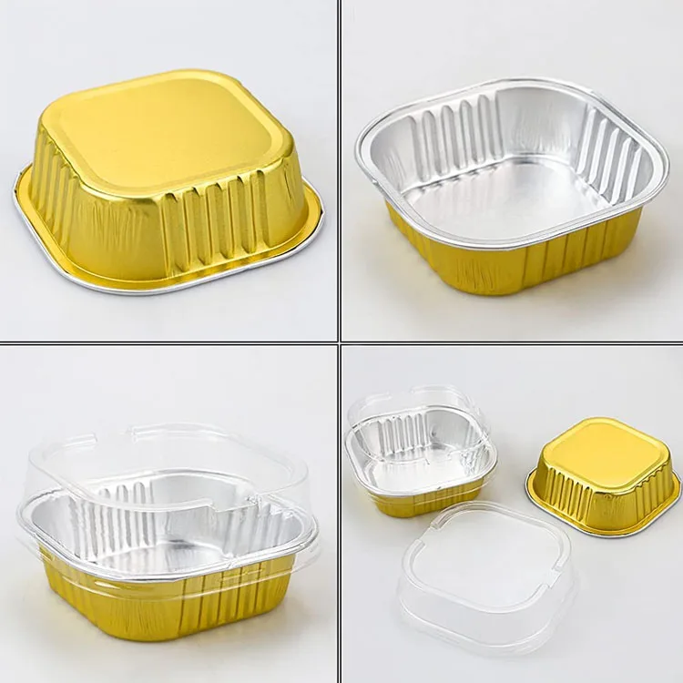 168 مل C168 قطر 108 مم 6 أونصة 4 بوصة صينية بيضوية ناعمة الجوانب مصنوعة من رق الألومنيوم الذهبي الحجم الكامل مع غطاء لتقديم الطعام