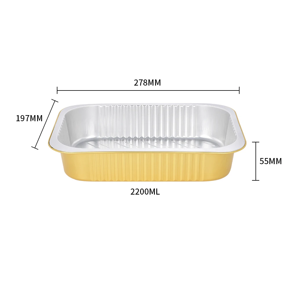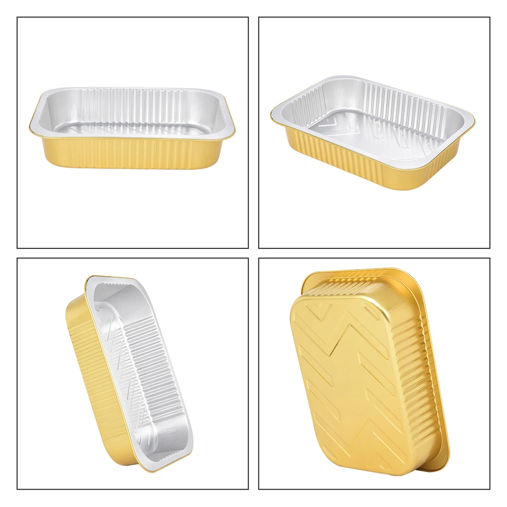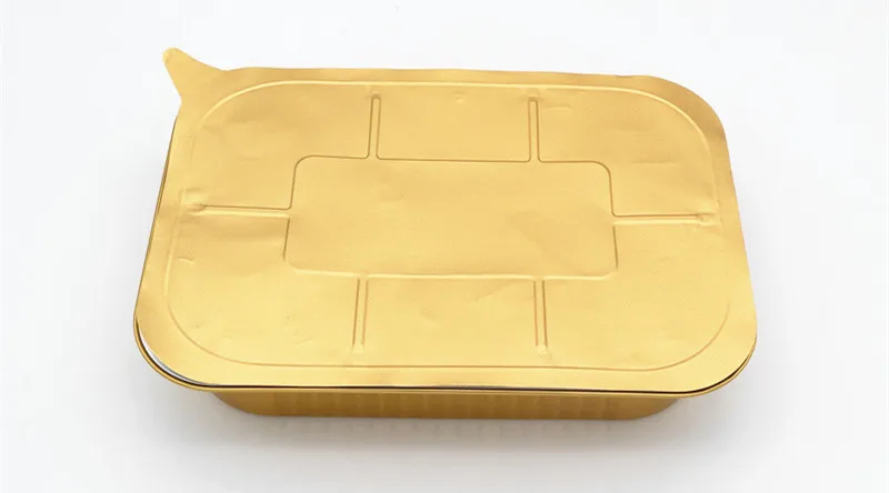 C090 90ml Eco-Friendly Disposable Food Container Rectangle Gold Aluminum Foil Tray with Seal Cover for Take Out Food
