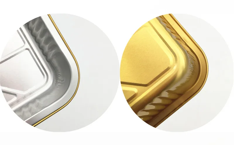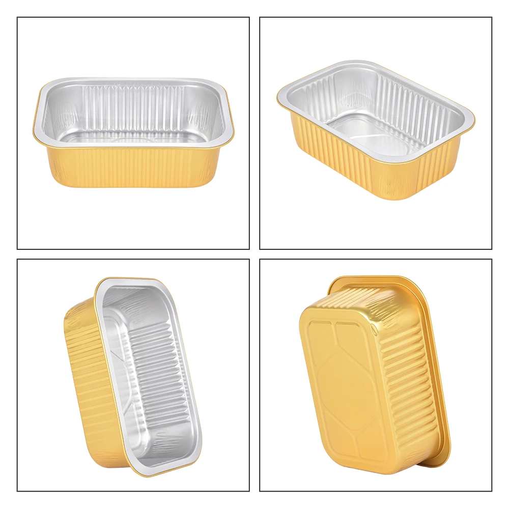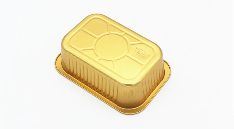 • C090 90ml Eco-Friendly Disposable Food Container Rectangle Gold Aluminum Foil Tray with Seal Cover for Take Out Food