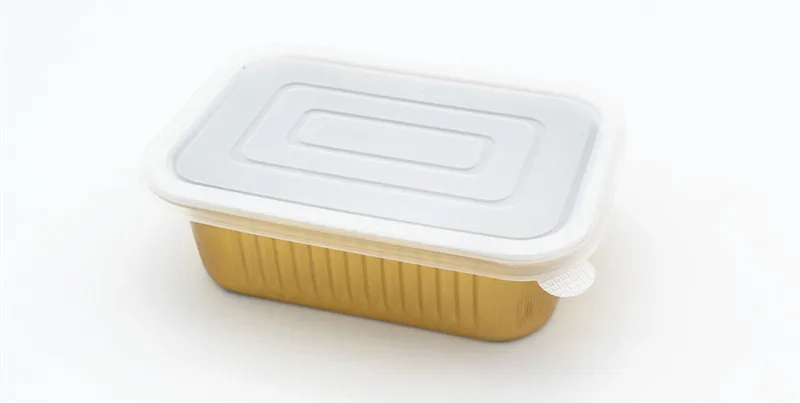 C090 90ml Eco-Friendly Disposable Food Container Rectangle Gold Aluminum Foil Tray with Seal Cover for Take Out Food