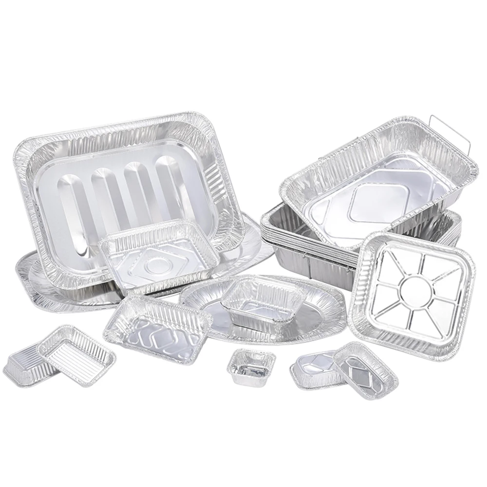 X350/450 High Quality Food-Grade Microwave Multi-Cavity 2-Compartment Aluminum Foil Box Takeaway Food Container for Meal Packs