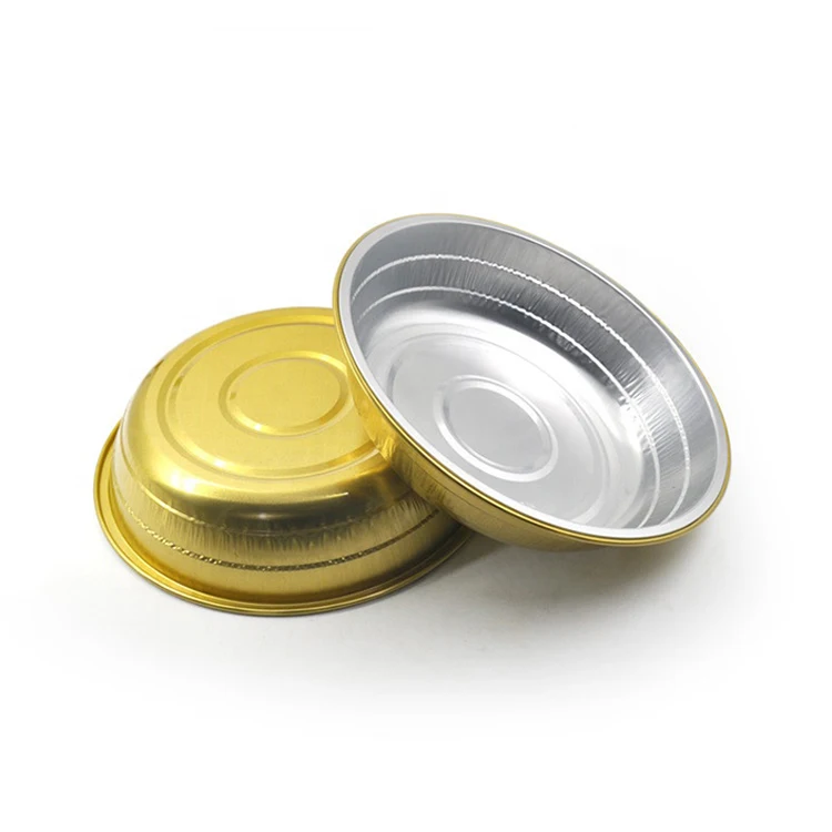 Free sample food grade 1350ml round pasta broiler roasting baking pans gold aluminium foil disposable flan container with lid |