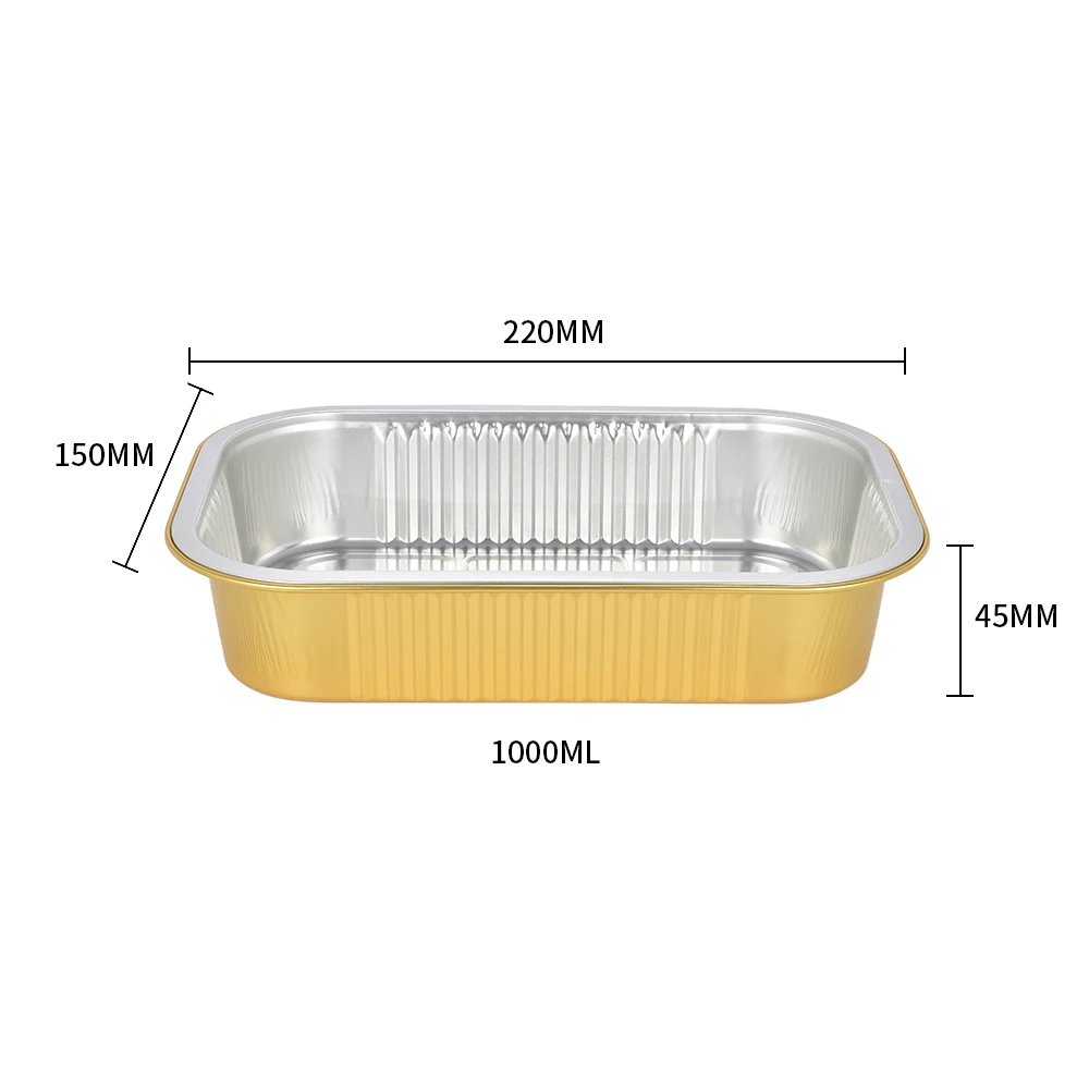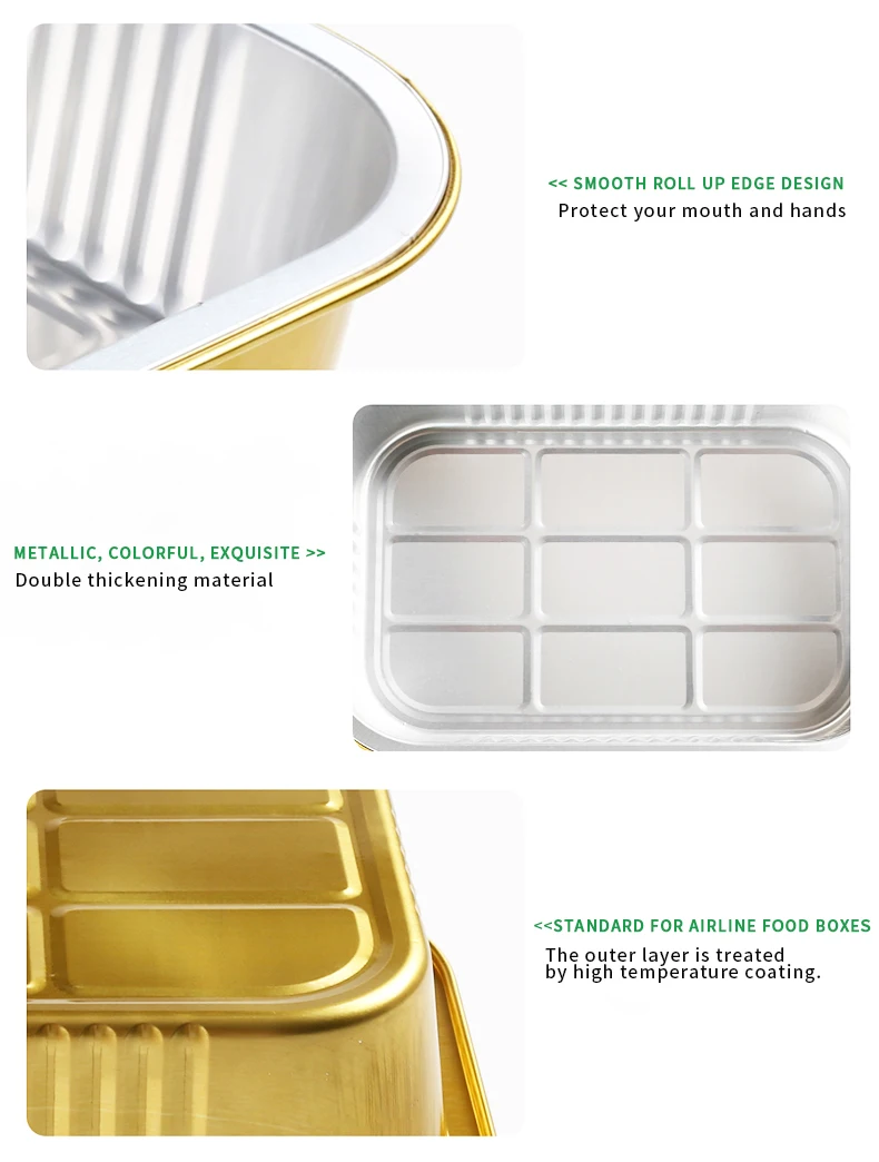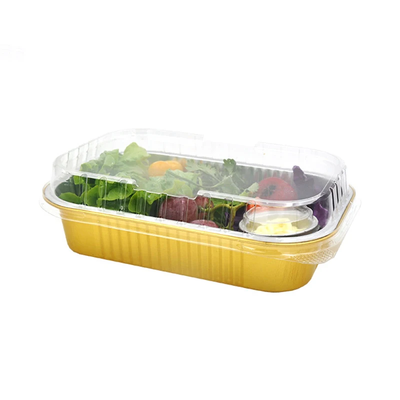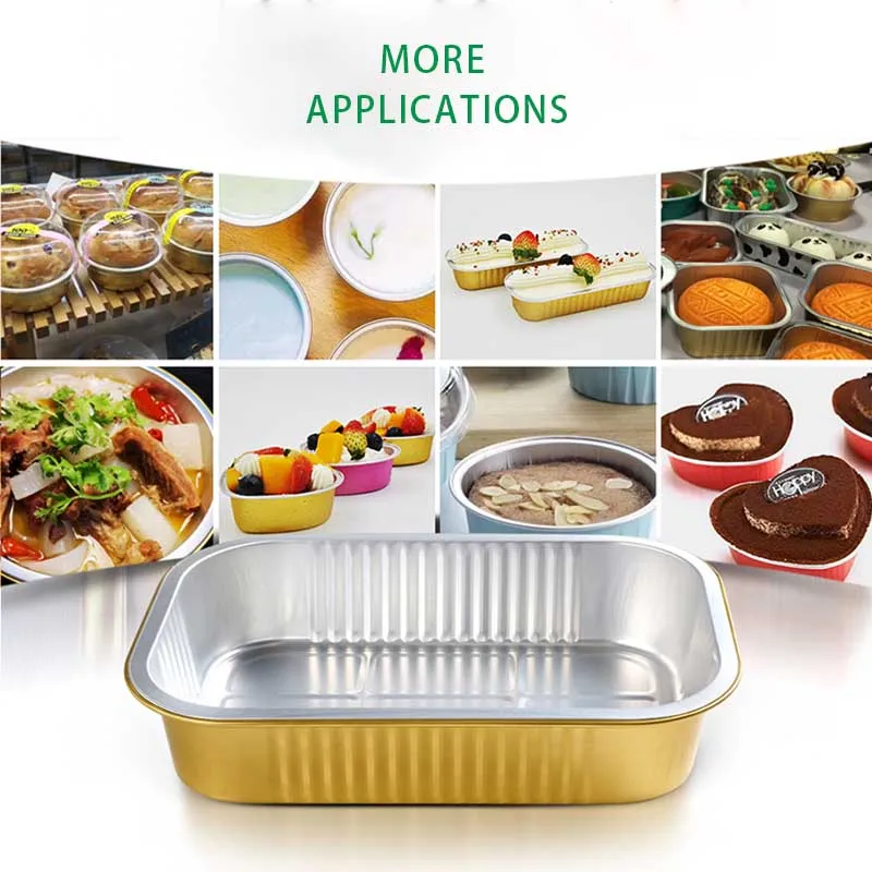 C090 90ml Eco-Friendly Disposable Food Container Rectangle Gold Aluminum Foil Tray with Seal Cover for Take Out Food