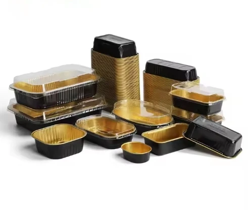 240ml 112mm Z240 4inch 8oz Black Gold Color Rectangle Cups Supplier Full Size Aluminum Pans Foil Containers with Lids for Food