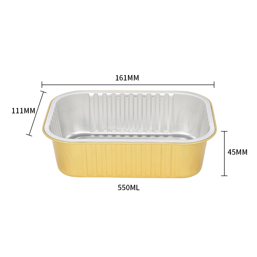 C090 90ml Eco-Friendly Disposable Food Container Rectangle Gold Aluminum Foil Tray with Seal Cover for Take Out Food