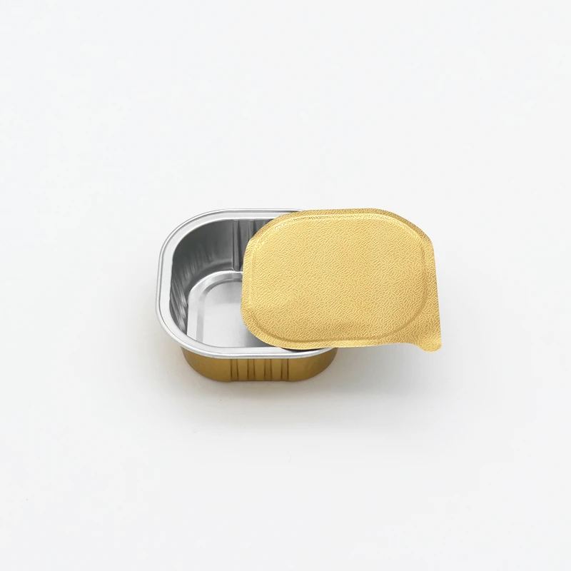 168ml C168 108mm 6oz 4inch Oblong Smooth Wall Golden Aluminum Foil Tray Full Size Take Out Container with Lid