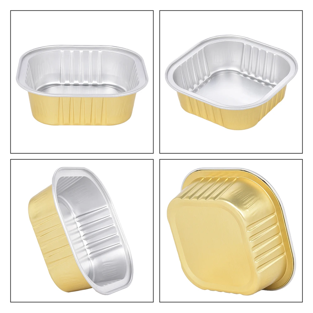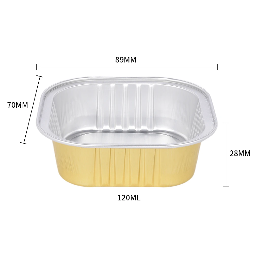 168ml C168 108mm 6oz 4inch Oblong Smooth Wall Golden Aluminum Foil Tray Full Size Take Out Container with Lid