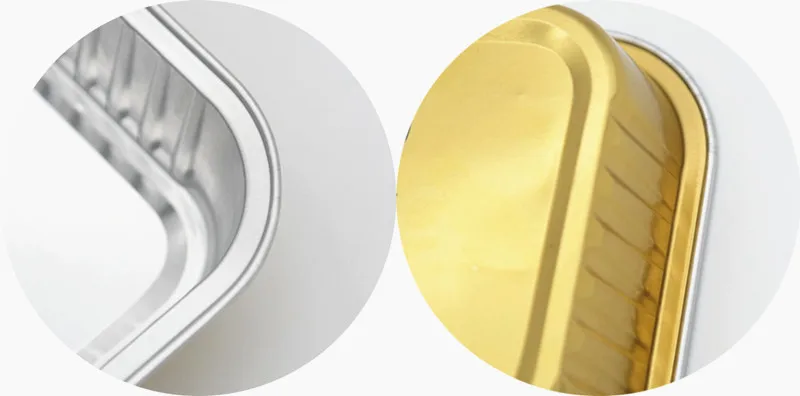 168ml C168 108mm 6oz 4inch Oblong Smooth Wall Golden Aluminum Foil Tray Full Size Take Out Container with Lid